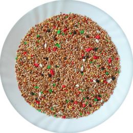 Složení: proso žluté, proso červené, proso zelené, proso bílé, oves nahý, lesknice, senegalské proso, mohár, vitamínové perle, extrudované obiloviny.