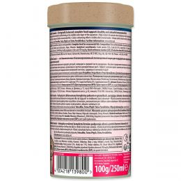 Kompletní krmivo pro ozdobné ryby. Pomalu klesající granule zaručují plnohodnotnou a pestrou výživu, přírodní barevné aktivátory plně rozvíjí přirozené zabarvení.