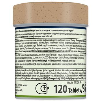 Kompletní krmivo pro býložravé ryby, živcí se potravou ze dna.