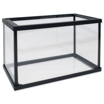 Skleněné akvárium s plastovým rámečkem nahoře i dole.
