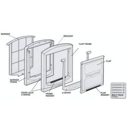Bílá plastová dvířka s průhledným flapem do dřevěných či plastových dveří.