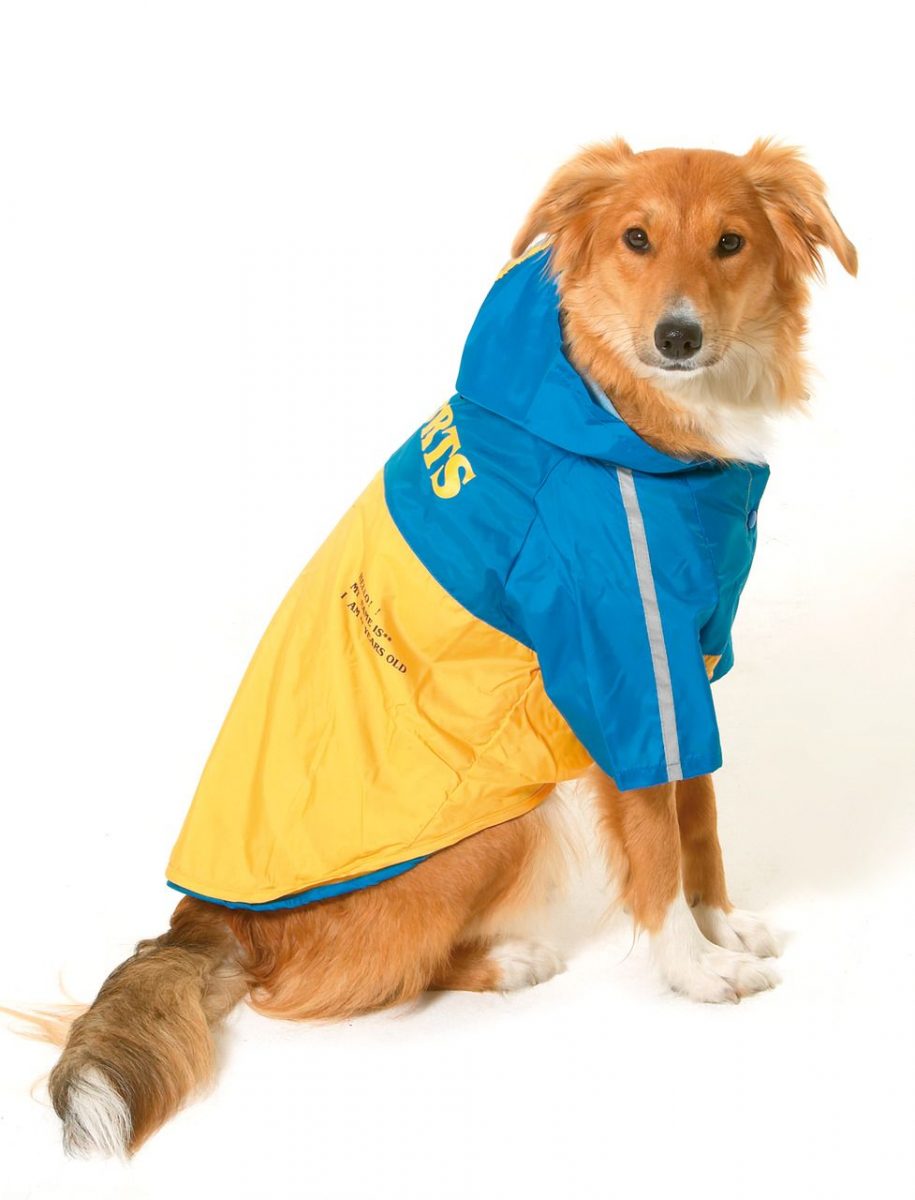Obleček pro psy v žlutomodré kombinaci s odepínatelnou fleesovou vložkou - obleček na jaro, podzim i zimu. Chrání proti dešti, větru i zimě. Lze prát při 30° C.